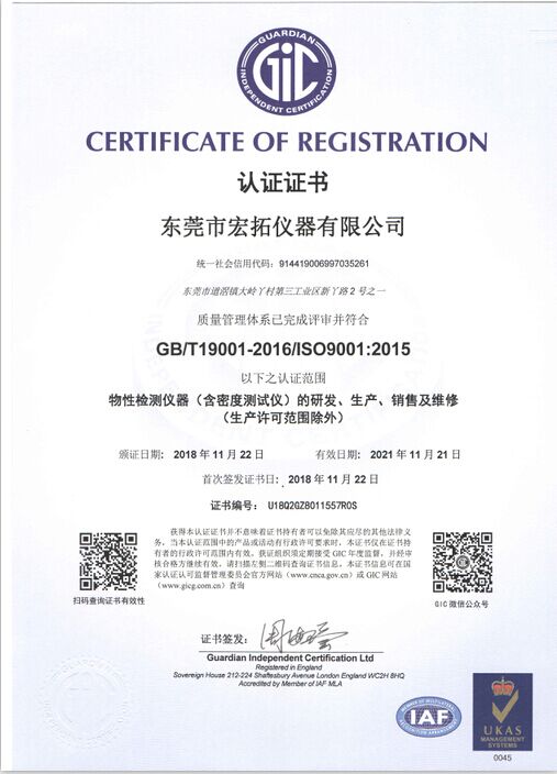 宏拓儀器通過(guò)ISO9001:2015質(zhì)量體系管理認(rèn)證,通過(guò)國(guó)家計(jì)量測(cè)試中心全面質(zhì)量與性能檢測(cè),獲得國(guó)家計(jì)量器具型式批準(zhǔn)CPA證書(shū),參與起草制定: 【GB/T 1040.1-2025塑料 拉伸性能的測(cè)定】、【GB/T 1634.1-2025塑料 負(fù)荷變形溫度的測(cè)定】、【GB/T 44559.1-2024塑料 硬質(zhì)塑料沖孔性能的測(cè)定】 、【GBT 43139-2023鑄造鋁合金液減壓凝固試樣密度檢測(cè)】......等標(biāo)準(zhǔn)。